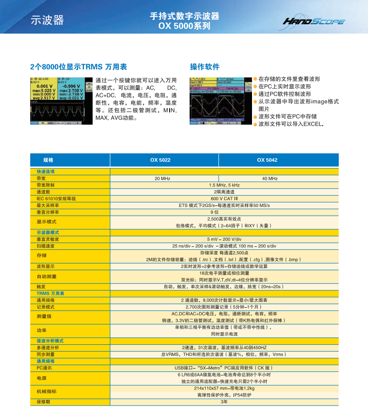 法國(guó)CA 便攜式隔離通道示波器 OX7202