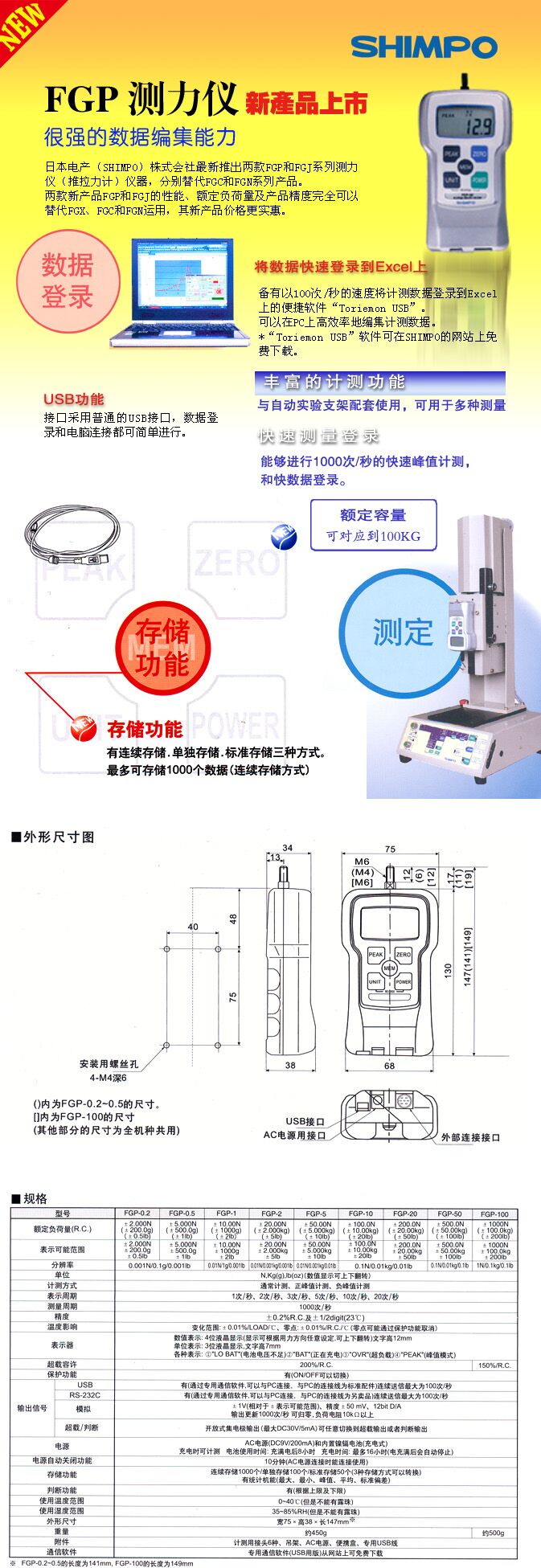 日本力新寶SHIMPO FGJ-100 數(shù)字式測(cè)力儀 1000N 特殊定制