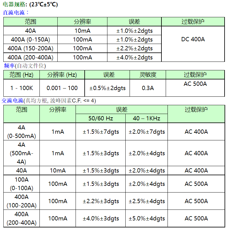 高分辨率:DC 10mA, AC 1mA