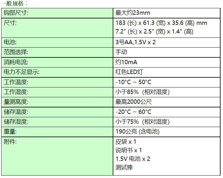 高分辨率:直流1mA (4A DC檔位); 交流0.1mA (400mA AC檔位)
