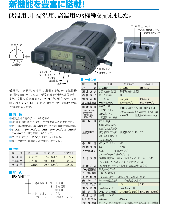 日本千野 IR-AH系列 手持式數(shù)字輻射溫度計