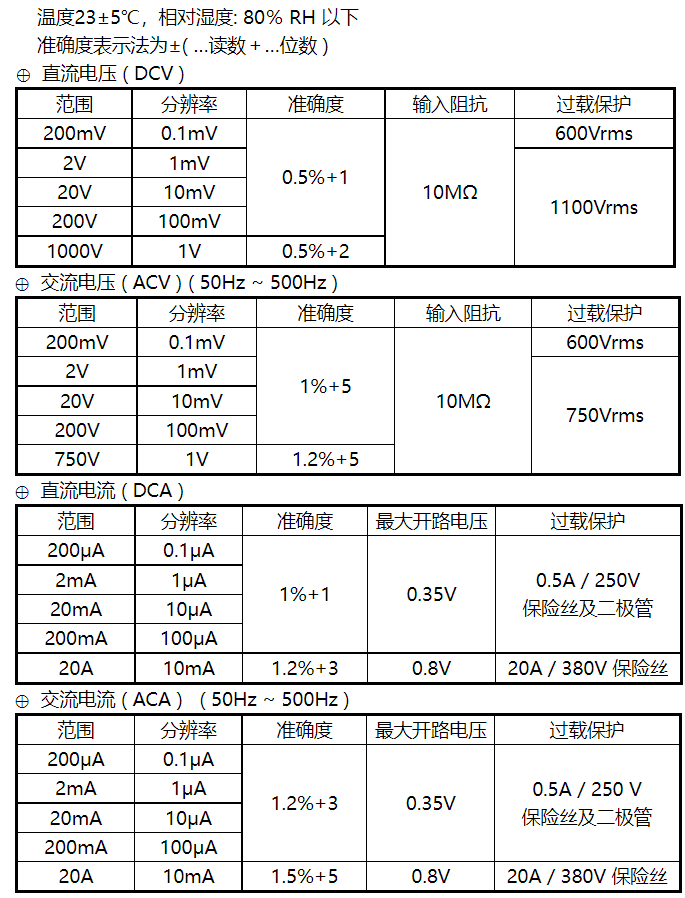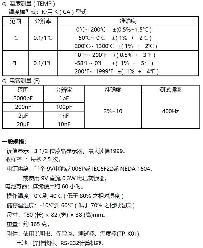 V, A, Ohm, Hz, Cx 及 ℃/ ℉ 直接輸入