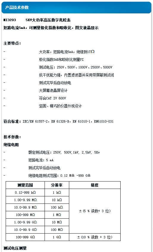 美翠 5KV大功率高壓數(shù)字兆歐表 MI3203