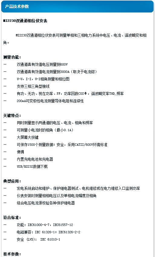 美翠 雙通道相位伏安表 MI2230