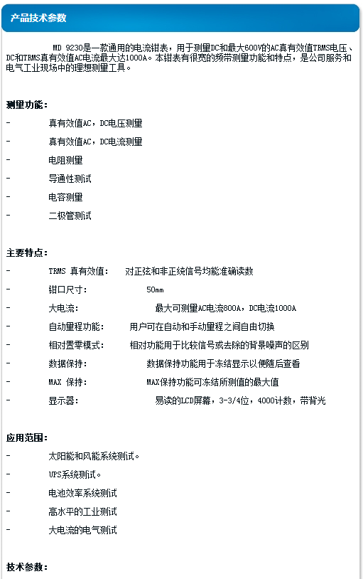 美翠 工業(yè)真有效值A(chǔ)C/DC電流鉗表 MD9230