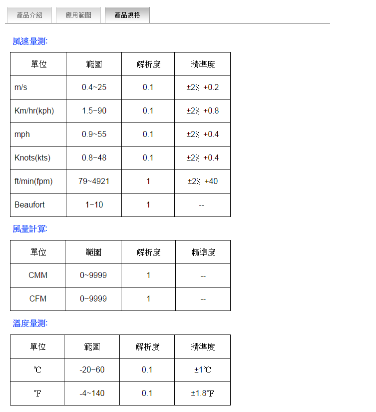 風(fēng)速0.4-25m/s,風(fēng)量0-9999CFM 風(fēng)溫-20—60℃風(fēng)濕20-80%RH,大氣壓350—1100hPa(精2hPa),99組記錄