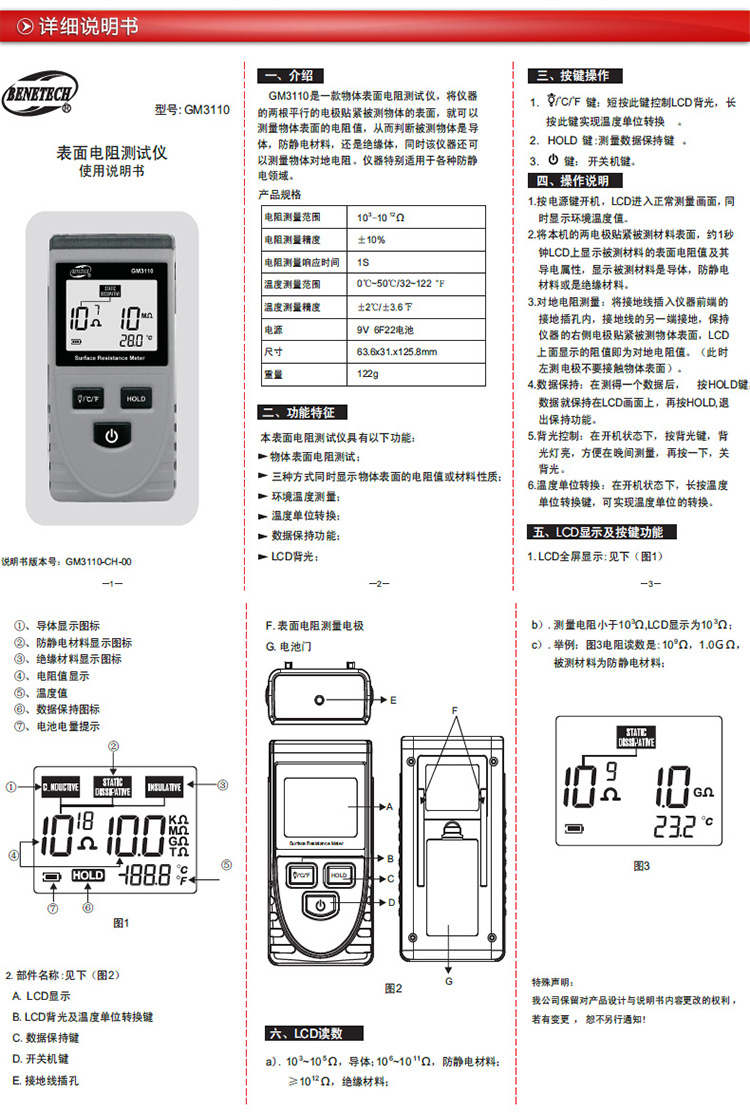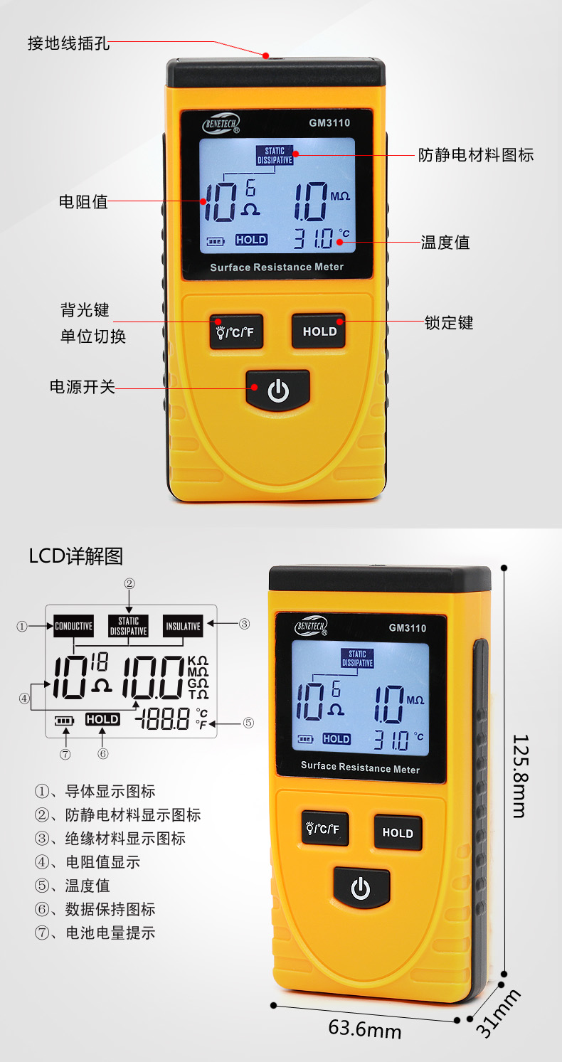 標(biāo)智BENETECH 表面電阻測(cè)試儀 GM3110