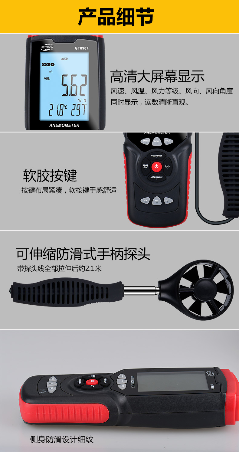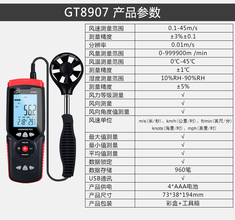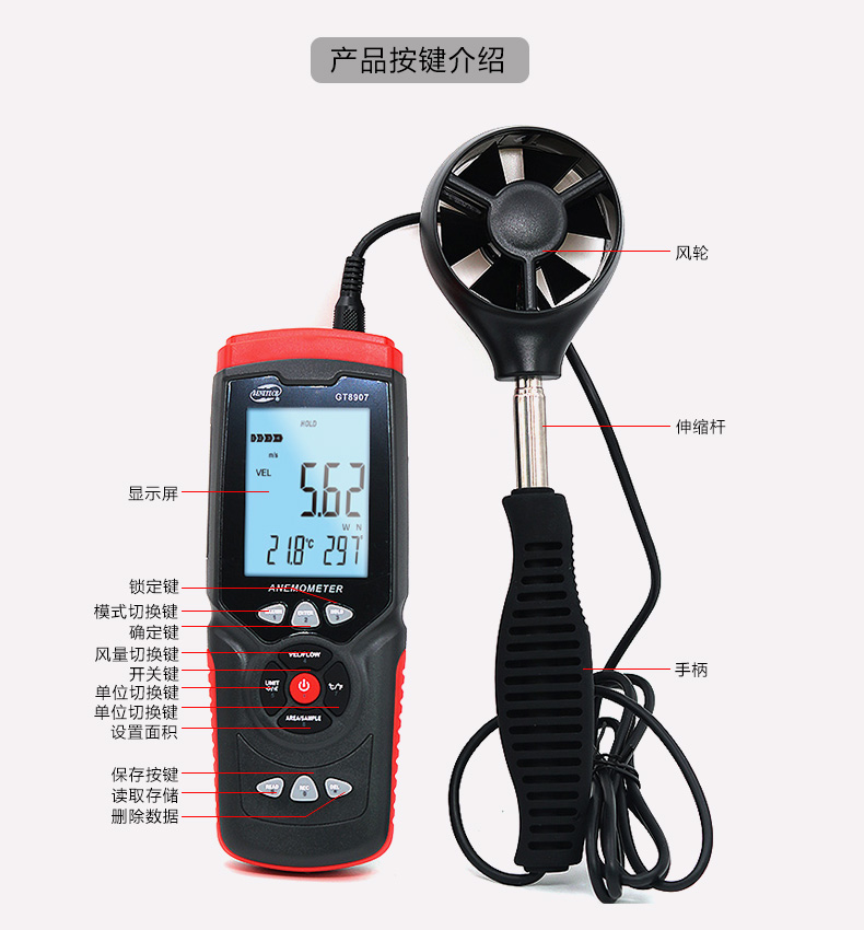 標(biāo)智GT8907 高精度數(shù)字多功能風(fēng)速儀 風(fēng)力計(jì)風(fēng)溫風(fēng)向風(fēng)量測(cè)量測(cè)試