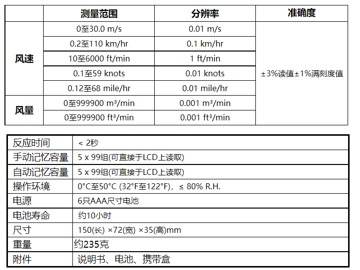 瞬間、平均值、 最大值風(fēng)量測量