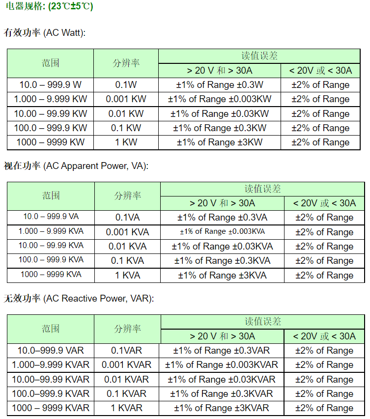 有效功率 (W、KW、HP)、無效功率 (VAR、KVAR)及視在功率 (VA、KVA)量測