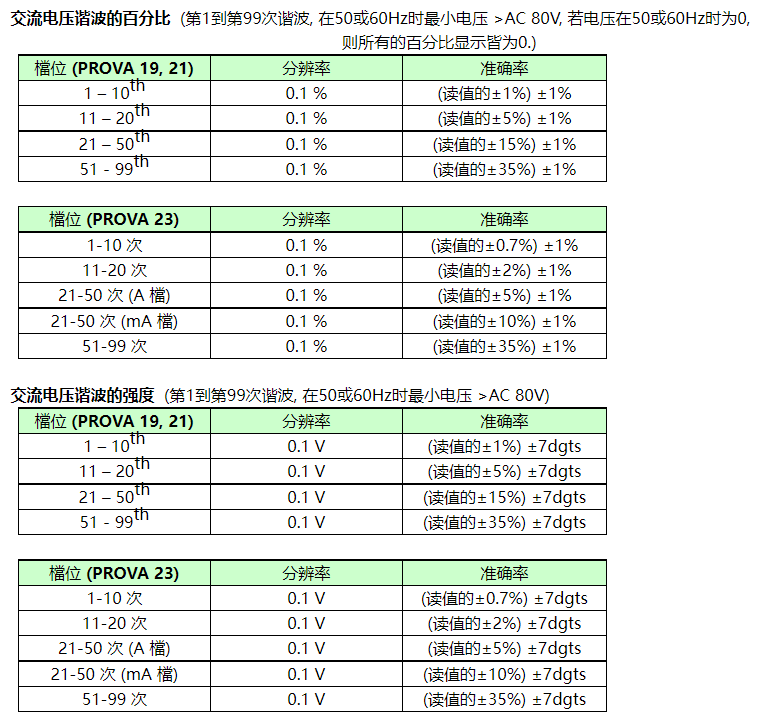 電壓/電流第1到第99次的諧波分析,1.0%基準(zhǔn)誤差