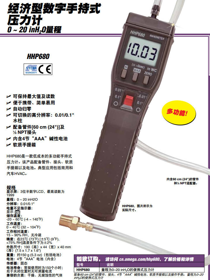 HHP680是一款低成本的多功能手持式壓力計(jì)。該產(chǎn)品配備管件、接頭、軟質(zhì)手提箱以及電池。典型應(yīng)用包括商用和汽車HVAC。