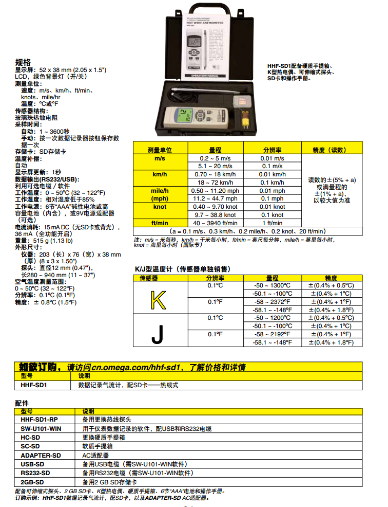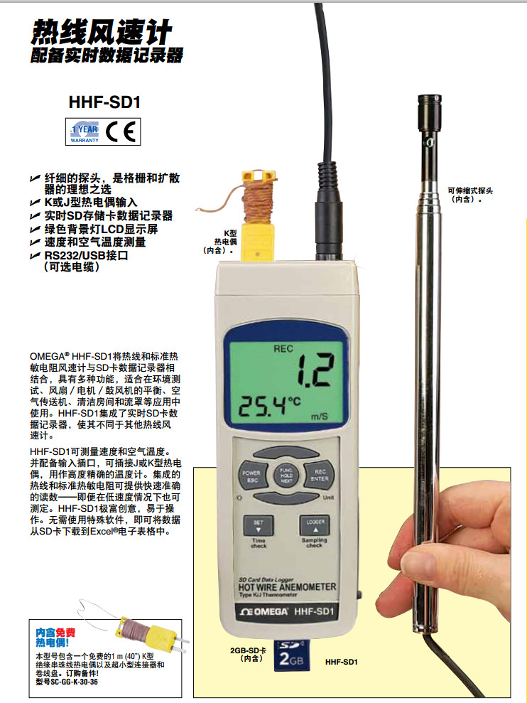 美國omega HHF-SD1熱線風(fēng)速計