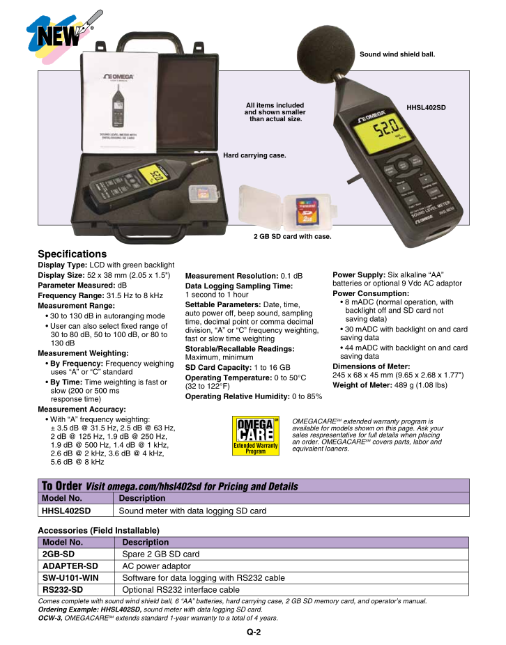 美國omega 噪音計,帶數(shù)據(jù)記錄SD卡HHSL402SD