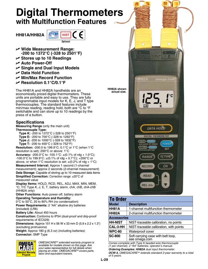 堅固耐用的手持數字溫度計HH81A & HH82A Series