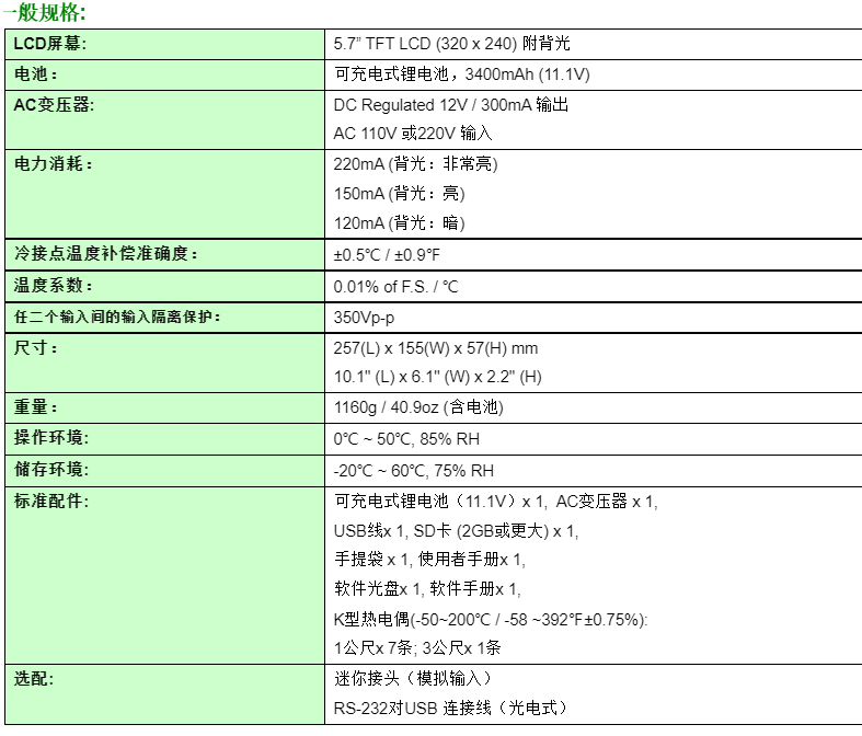 附配件包含:熱電偶、記憶卡、電池等,可讓使用者實(shí)時(shí)使用本儀器