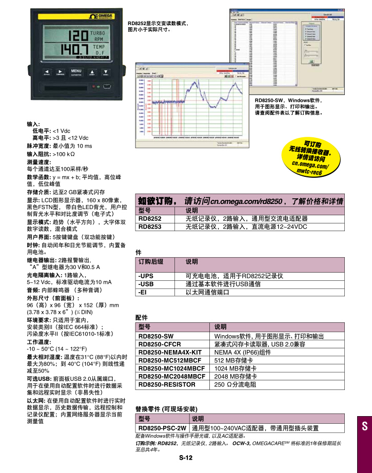 OMEGA的RD8250具備雙功能按鍵 和清晰的顯示屏,是一款精良的過程記錄儀。圖形用戶界面讓配置十分容易。