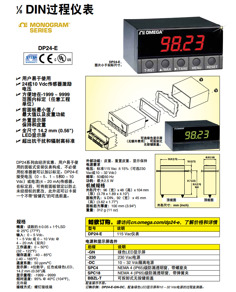 美國omega 溫度/過程面板儀表DP24-E