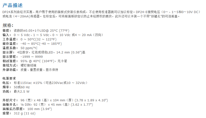 溫度/過程面板儀表DP24-E