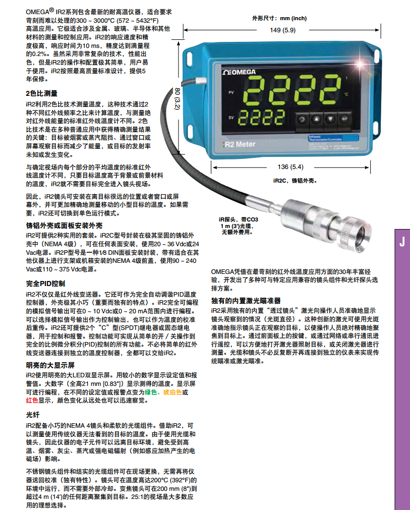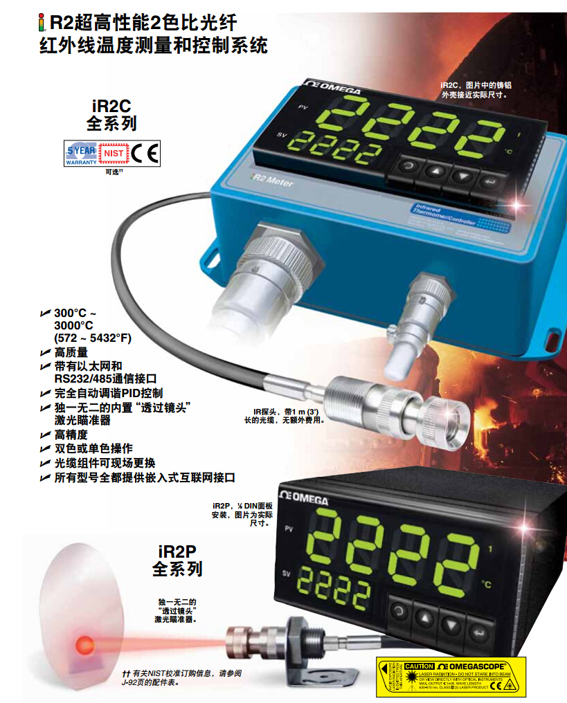美國(guó)omega 固定架紅外測(cè)溫儀/發(fā)射器 iR2C全系列