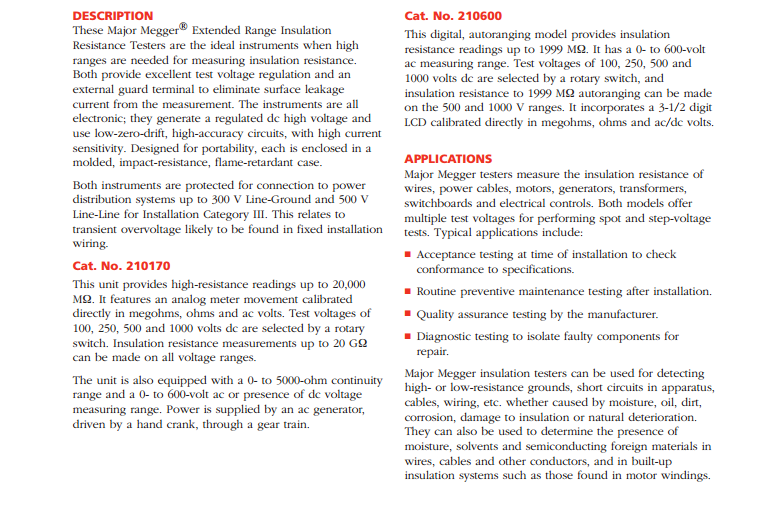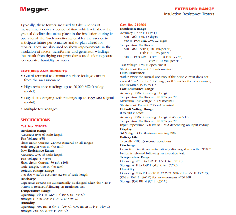 美國MEGGER 擴(kuò)展范圍的絕緣電阻測試儀 210600