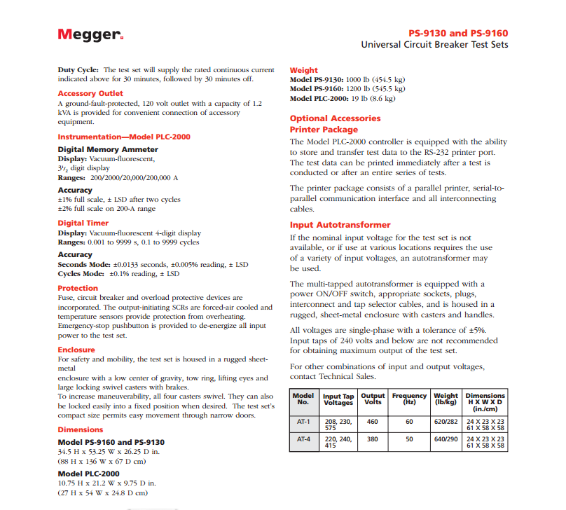 美國MEGGER 通用斷路器測試儀 PS-9130