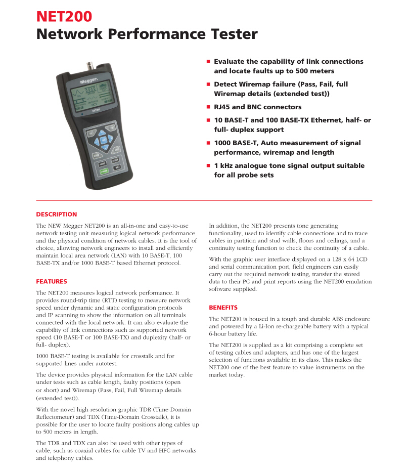 美國MEGGER 網(wǎng)絡以太網(wǎng)測試儀 NET200