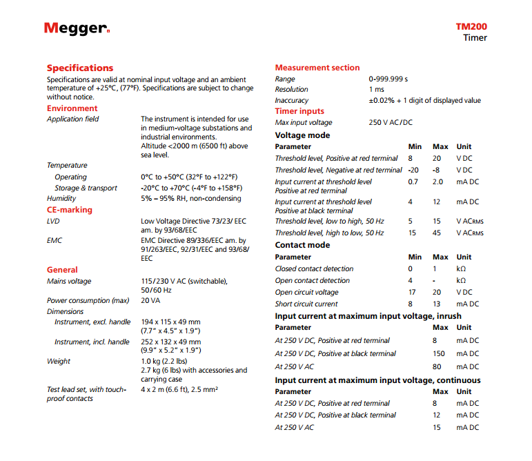 美國MEGGER 數(shù)字式定時(shí)器 TM200
