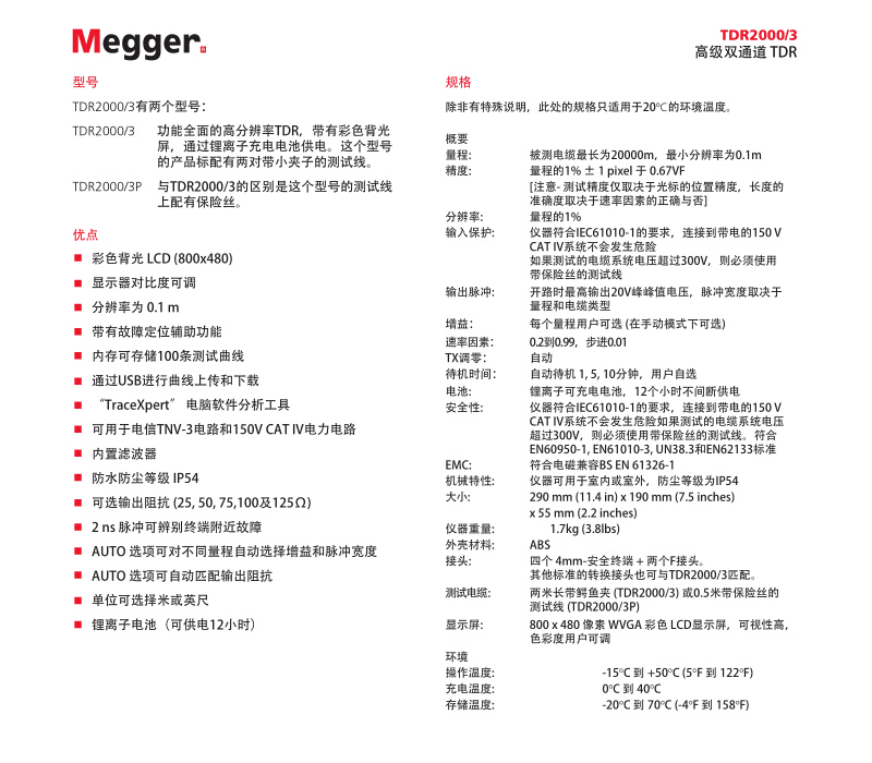 美國MEGGER 先進的雙通道時域反射計 TDR2000/3