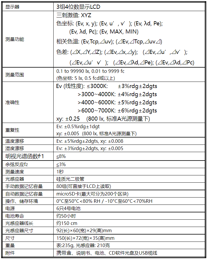 LED顏色分類功能 (x, y)或(Tcp, uv)。(使用本CD軟件)