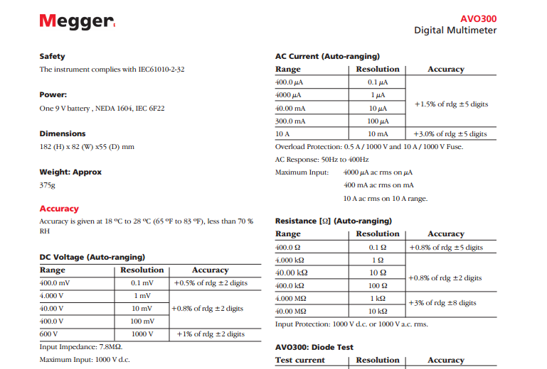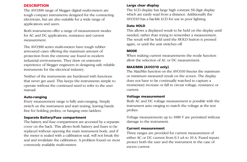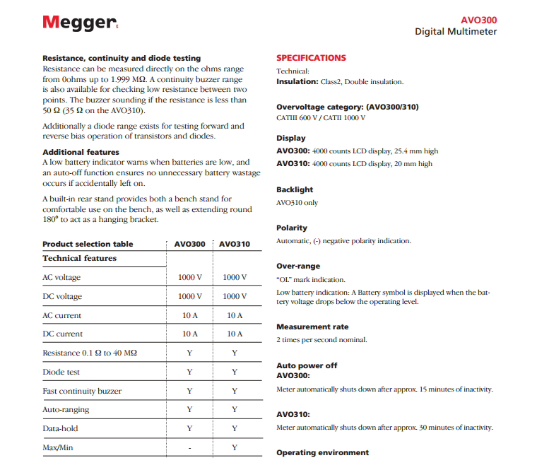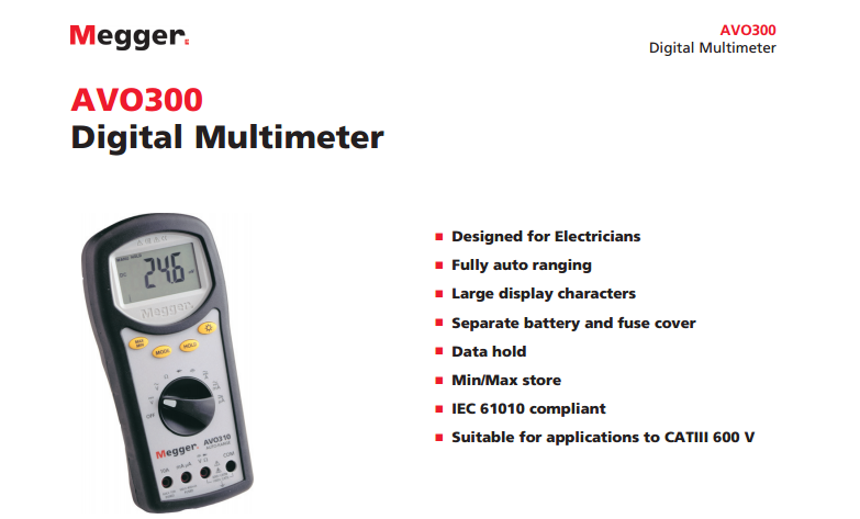 美國MEGGER CAT III數(shù)字萬用表 AVO300