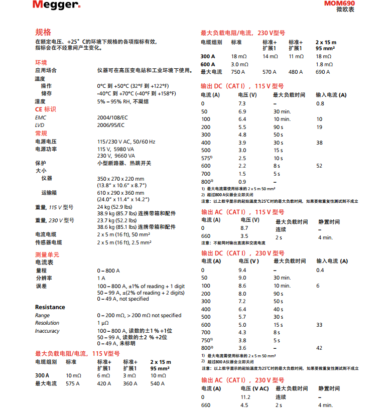 美國MEGGER 內(nèi)置測試控制的微歐表 MOM690A