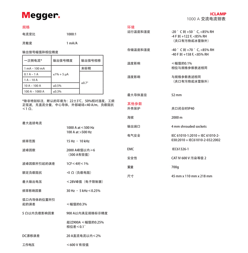 美國MEGGER 1000 A 交流電流鉗表 ICLAMP