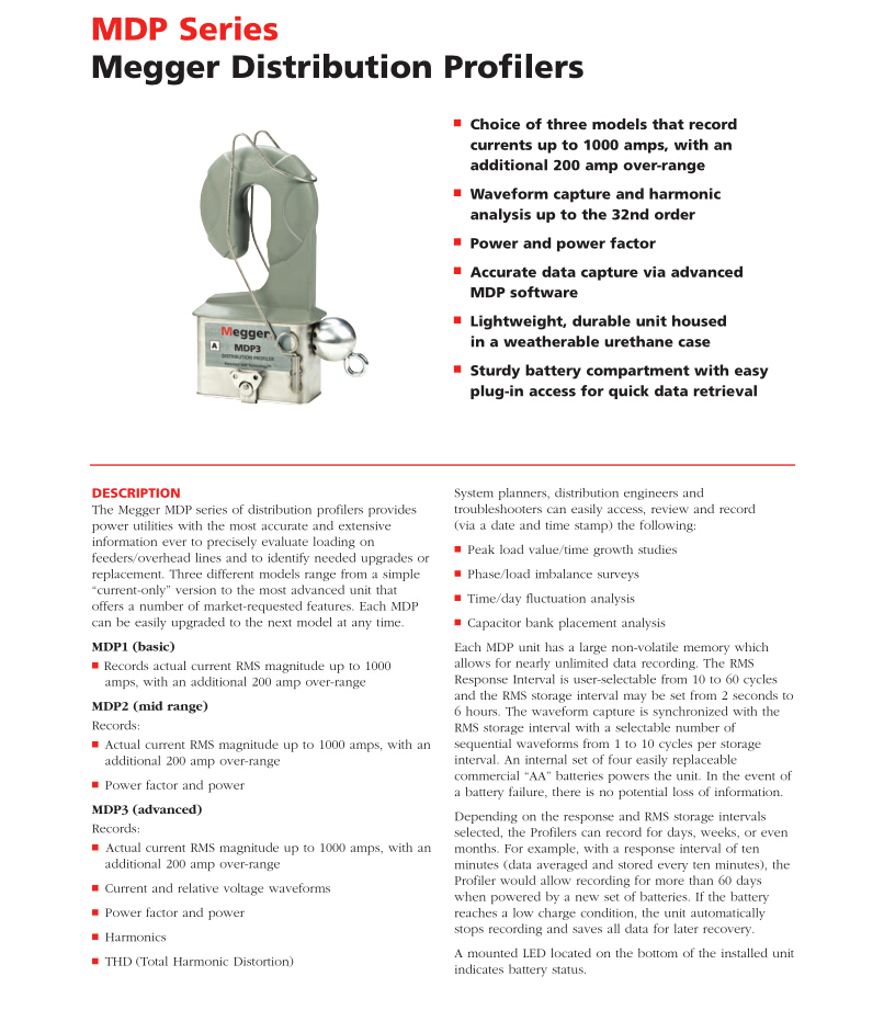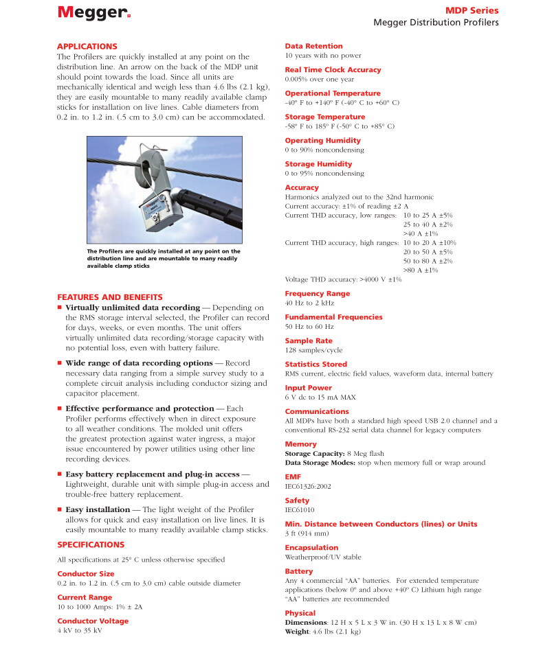 美國MEGGER 高壓架空線路電流表和配電線路分析器 MDP系列