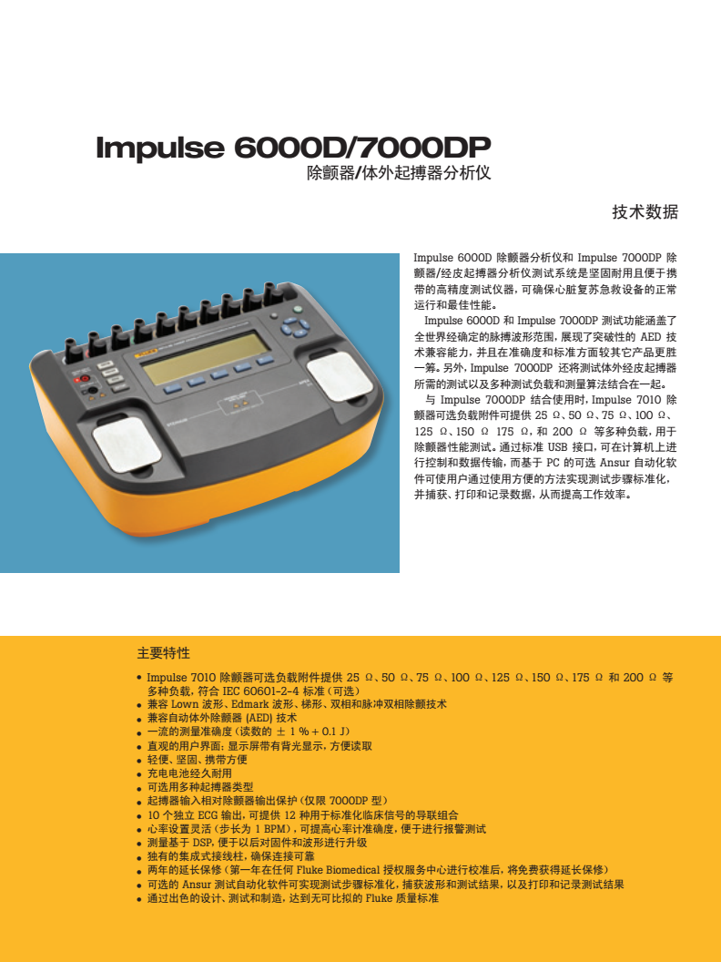 Impulse 7000DP 除顫器/經(jīng)皮起搏器分析儀測試系統(tǒng)是堅(jiān)固耐用且便于攜帶的高精度測試儀器, 可確保心臟復(fù)蘇急救設(shè)備的正常運(yùn)行和佳性能。