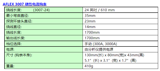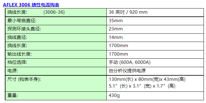 鉤部直徑(Model 3007 為軟性傳感器直徑):