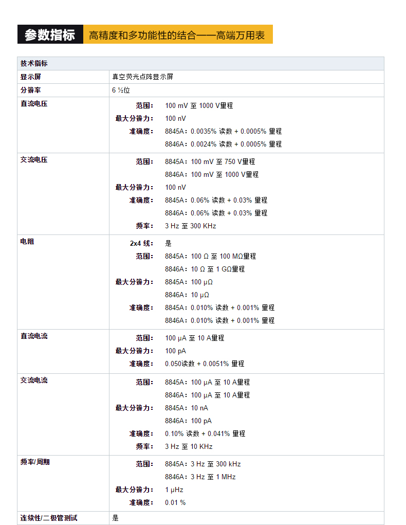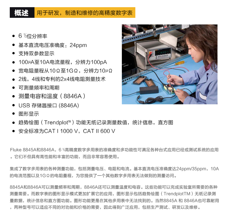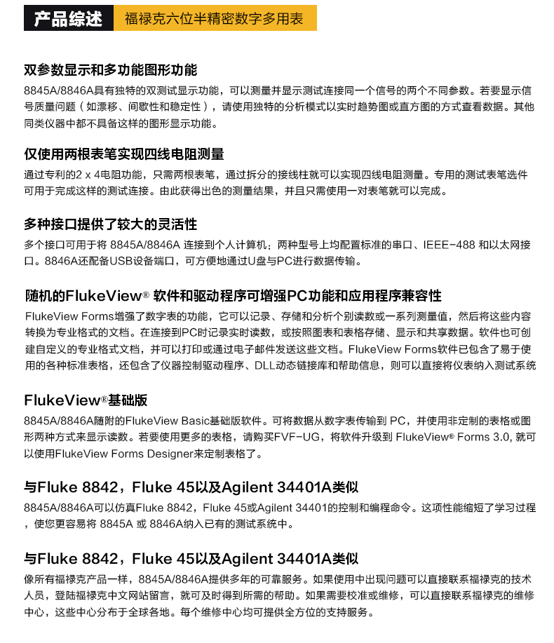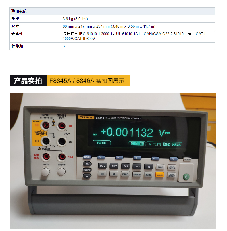 美國(guó)福祿克FLUKE FLUKE 8845A 六位半精密數(shù)字多用表