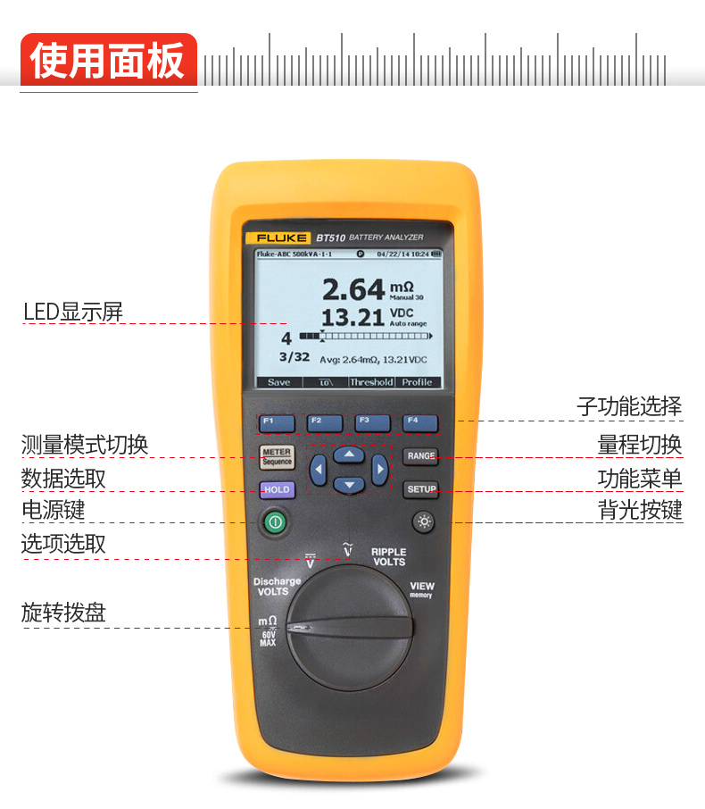 電池電壓,放電電壓,紋波電壓測(cè)試,數(shù)字萬(wàn)用表模式和序列測(cè)試模式,閾值和警告,電池間的連接片電阻測(cè)試和數(shù)據(jù)管理,自動(dòng)保持,F(xiàn)luke 電池管理,全面記錄,優(yōu)化的用戶界面,USB 端口