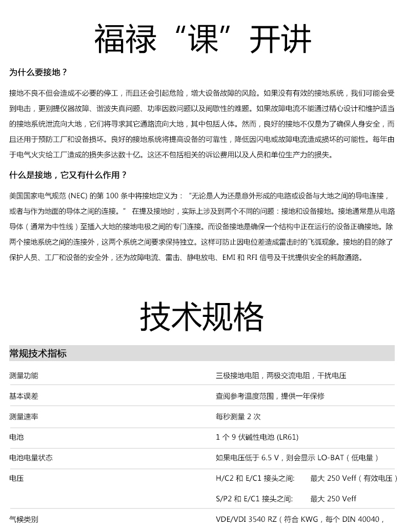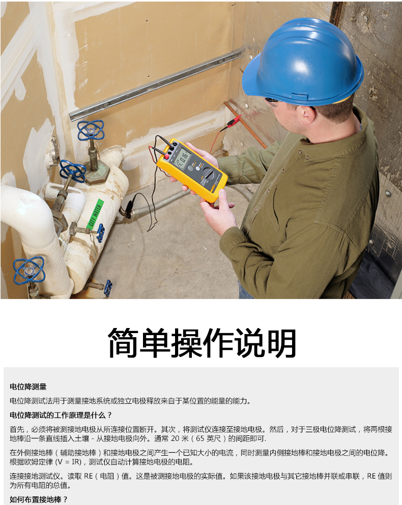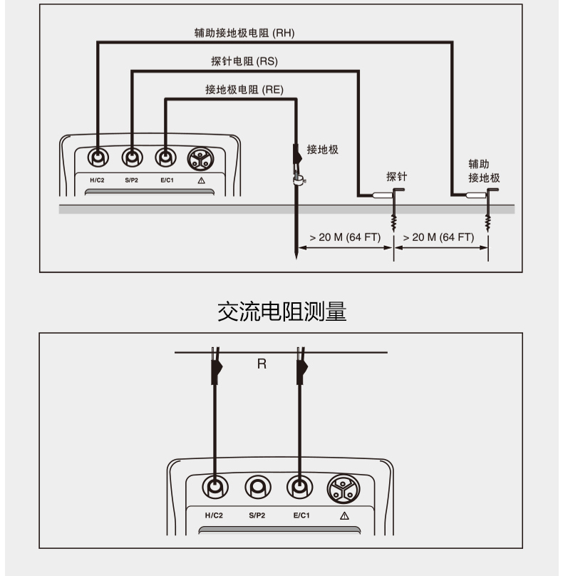 三極電壓降接地測(cè)試法進(jìn)行基本的測(cè)量,兩極電阻測(cè)量法提供更多的功能