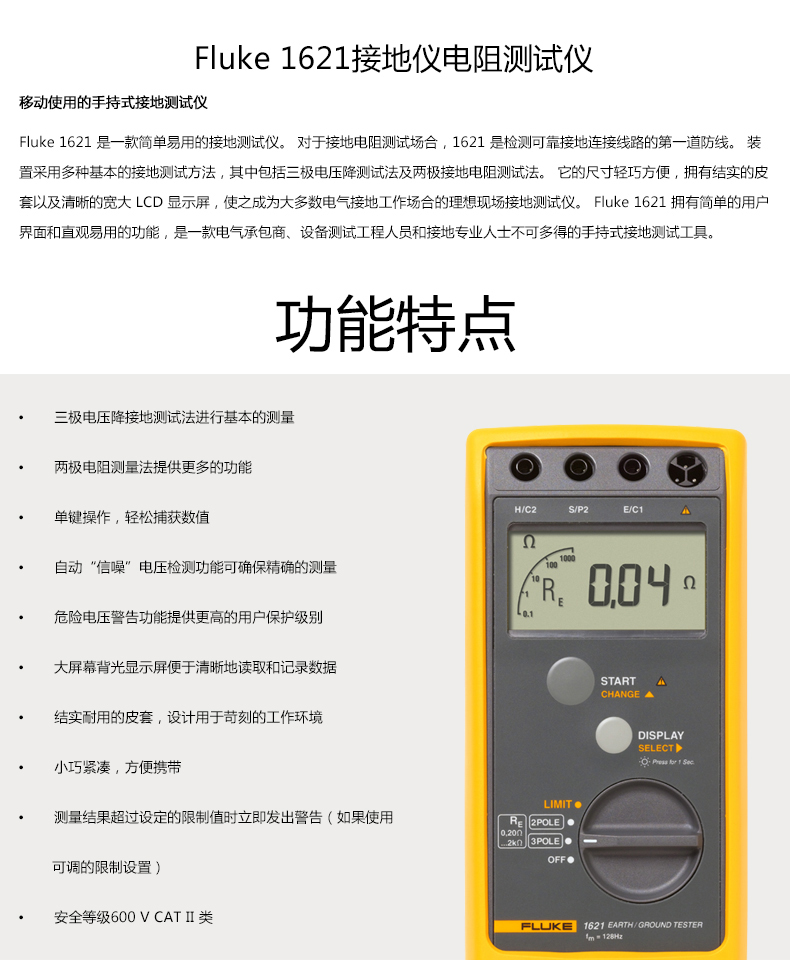 美國(guó)福祿克FLUKE Fluke 1621 接地電阻測(cè)試儀