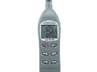 8726 AZ衡欣 便攜式溫濕度測試儀可以測量空氣溫度,外部溫度,相對濕度,露點(diǎn)溫度和濕球溫度.它的相對濕度傳感器可以使用33%和75%的鹽瓶輕松校準(zhǔn).