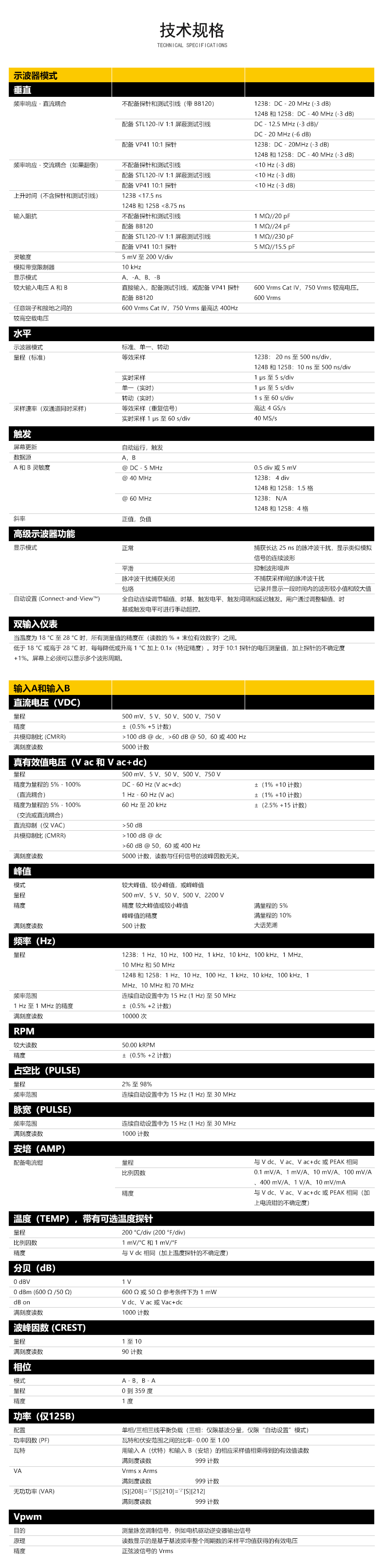 ?雙輸入數(shù)字示波器和萬(wàn)用表?40 MHz ?示波器帶屏蔽測(cè)試引線,可進(jìn)行電阻和通斷性測(cè)量?電阻、通斷性、二極管和電容計(jì)測(cè)量?功率測(cè)量(W、VA、VAR、PF、DPF、Hz)?電壓、電流和電力諧波