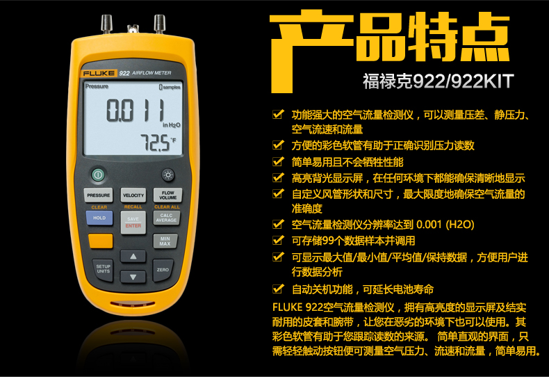 美國福祿克FLUKE Fluke 922KIT 空氣流量檢測儀|空氣質(zhì)量檢測儀