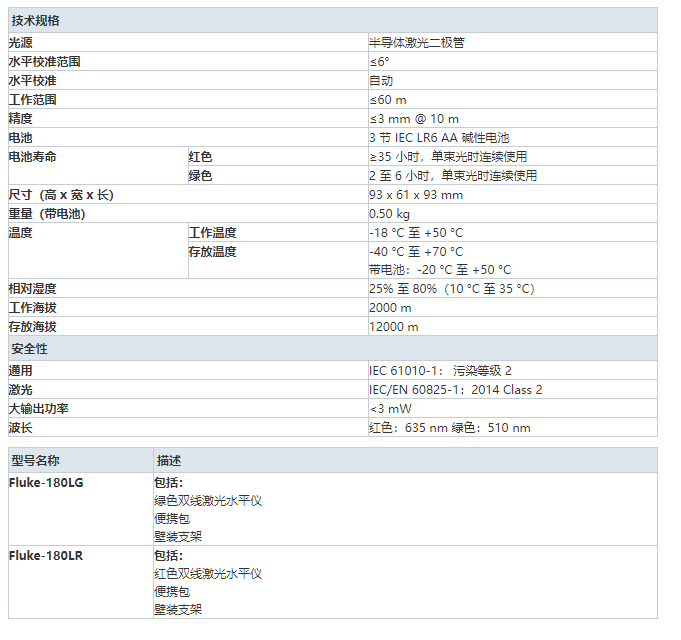 美國福祿克FLUKE FLUKE-180LR(紅光) 2線式激光水平儀