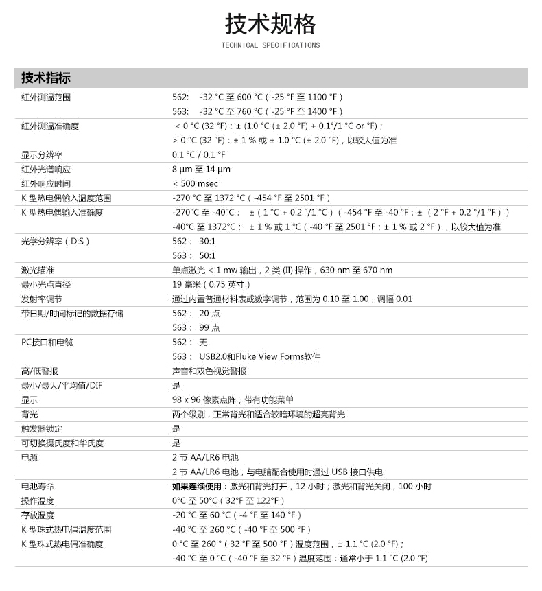 美國福祿克FLUKE Fluke 563 紅外線測溫儀 -32 °C 至760 °C