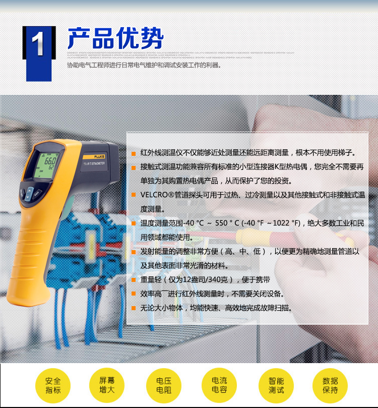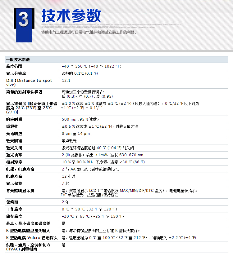 溫度測量范圍-40 °C ~ 550 ° C (-40 °F ~1022 °F),絕大多數(shù)工業(yè)和民用領(lǐng)域都能使用。
