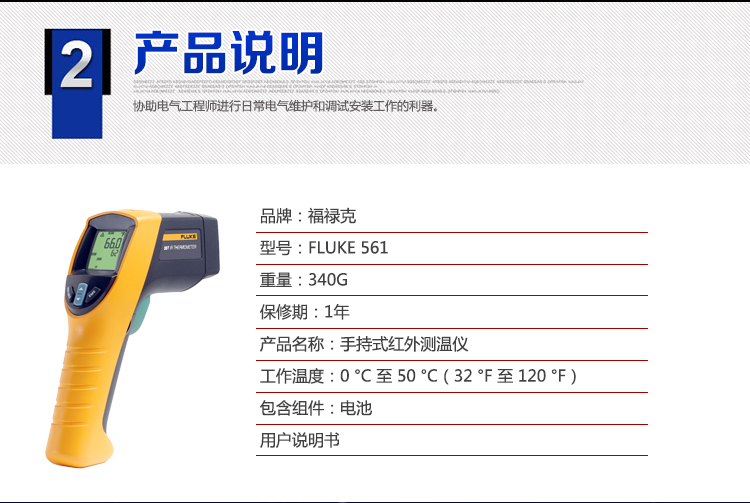 美國福祿克FLUKE Fluke 561 紅外線與接觸式測溫儀 -40 °C-550 ° C