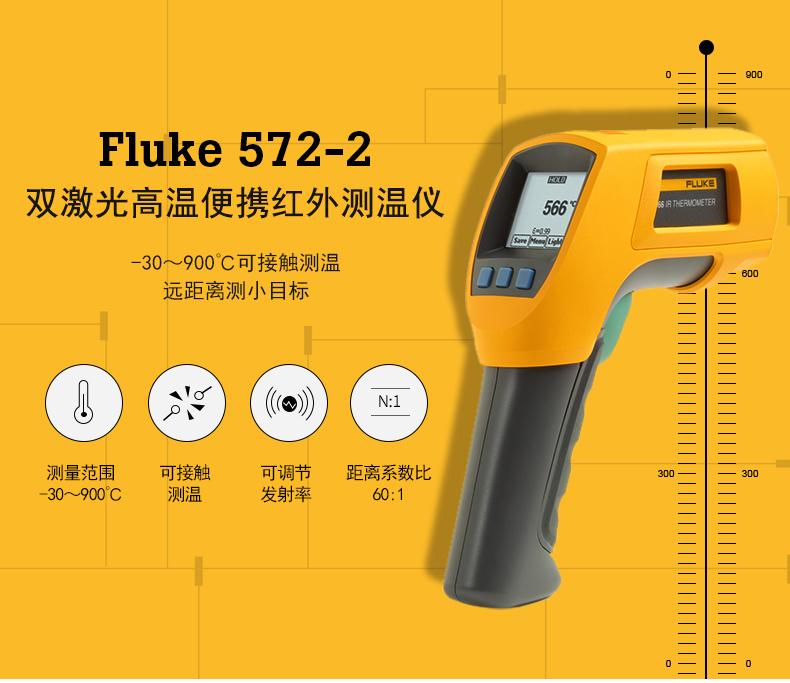 美國(guó)福祿克FLUKE FLUKE572-2高溫紅外測(cè)溫儀 -30 °C 至 900 °C