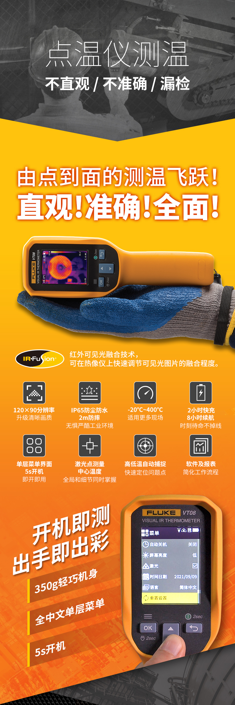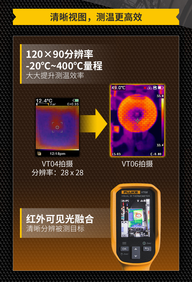 福祿克FLUKE VT08輕便型可視紅外熱像儀激光熱成像儀可視紅外